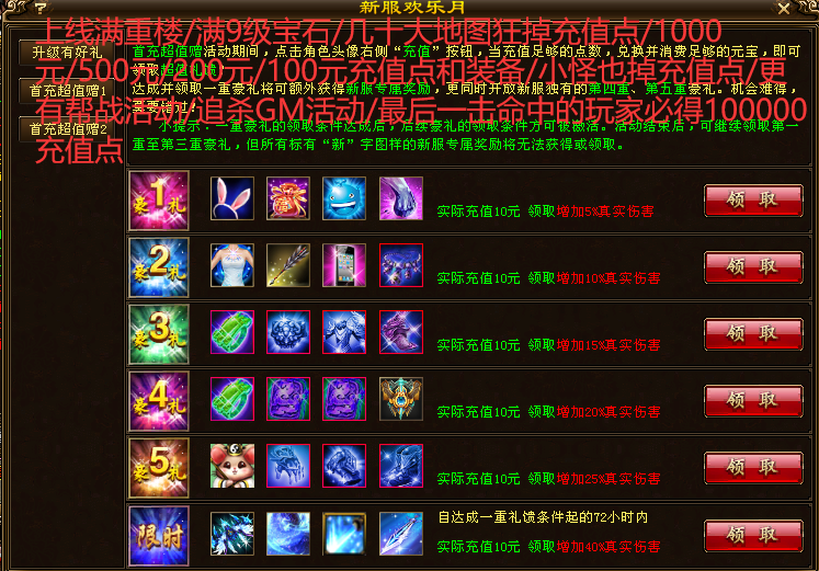 【独家更新】:上线120级,1000倍经验,100%爆率。上线满重楼,一键9级宝石